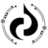 Black and white abstract geometric design with circular and curved shapes, featuring concentric circles, arcs, and small dot elements arranged symmetrically.
